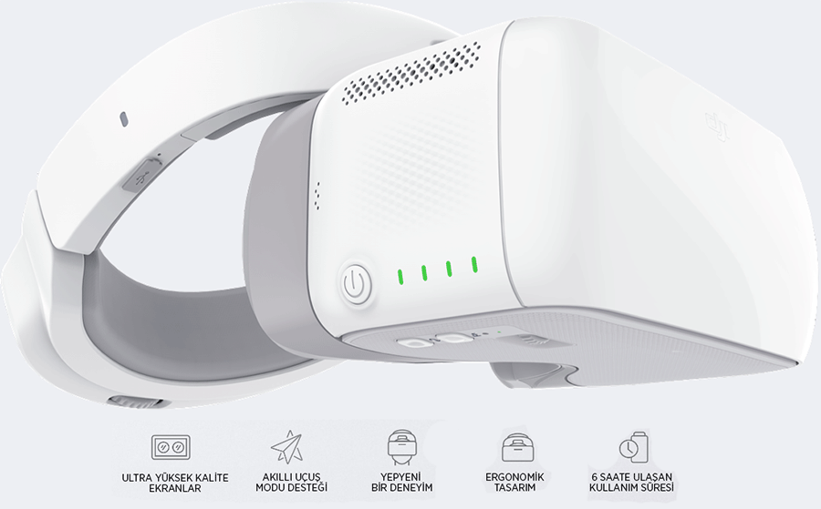 İlk bakışta biraz hantal gözüken ve VR gözlüklerini anımsatan , aslında çoğu gözlüğün aksine oldukça iyi bir kalite ve performans sunuyor. 1280×1440 gibi bir gözlük için oldukça yüksek çözünürlüğe (ki bu Oculus’un 1080×1200 olduğunu hatırlatalım) sahip iki ekranı içerisinde barındıran gözlük, DJI’ın yeni OcuSync kablosuz teknolojisiyle de uyumlu. Yani uzun mesafelerde 720p’lik görüntü aktarımının yanı sıra eğer Drone pilot’a yakınsa bu miktar 1080p’lere kadar çıkabiliyor.
